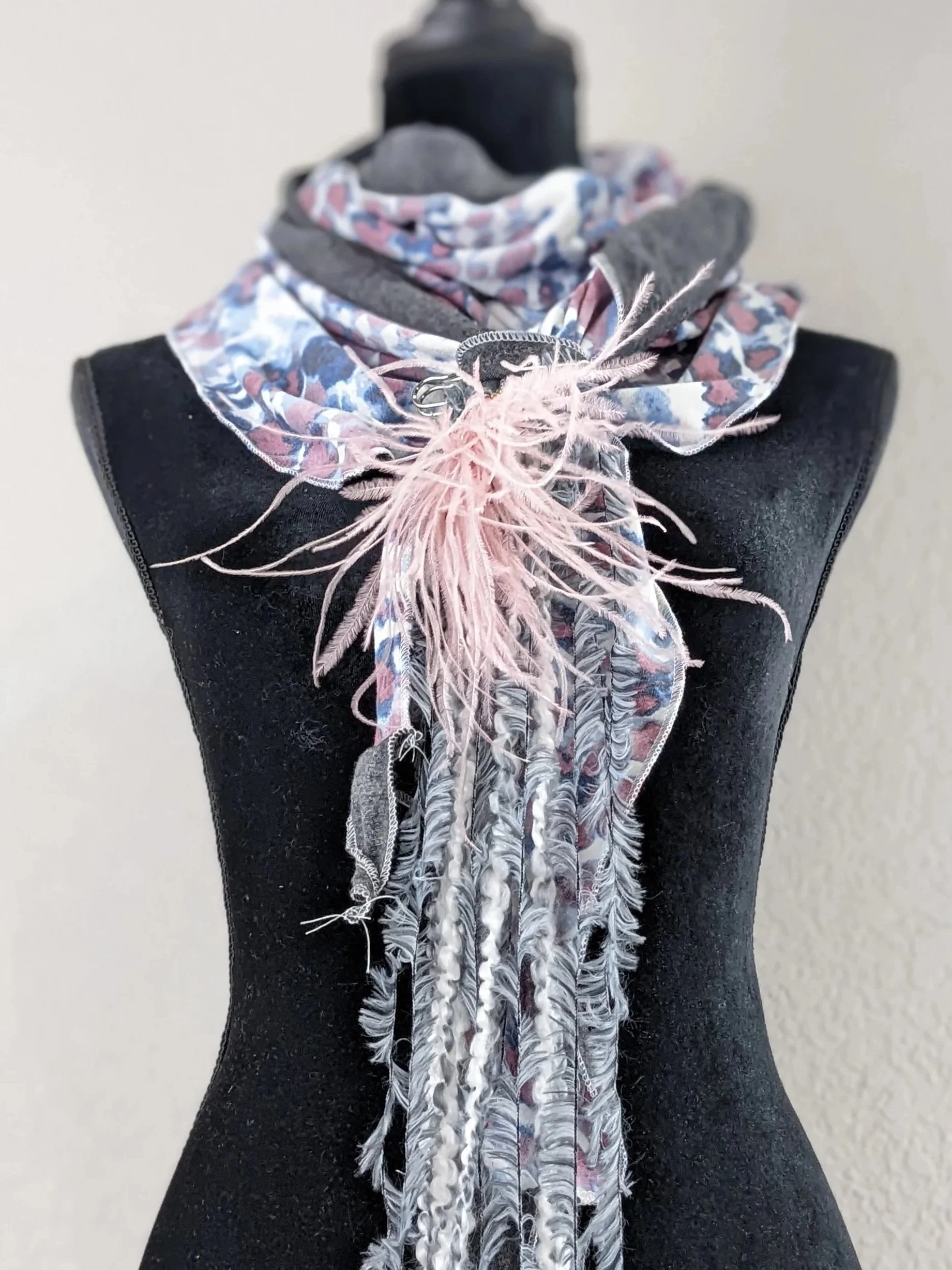 Explore an ever-changing collection of studio designed scarves and wraps; each handmade with curated textiles, signature layering, and artistic drape. From elevated everyday layering to bold boho-luxe statement pieces, each design carries bold artistry, rich texture, and intentional finishes.